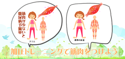 健康的な食事(砂糖以外の炭水化物:米、食物繊維の多い根菜類を含む野菜や果物などと、魚中心のたんぱく質や脂質をしっかり取りながら、歩行や筋肉トレーニングをすることが求められています。